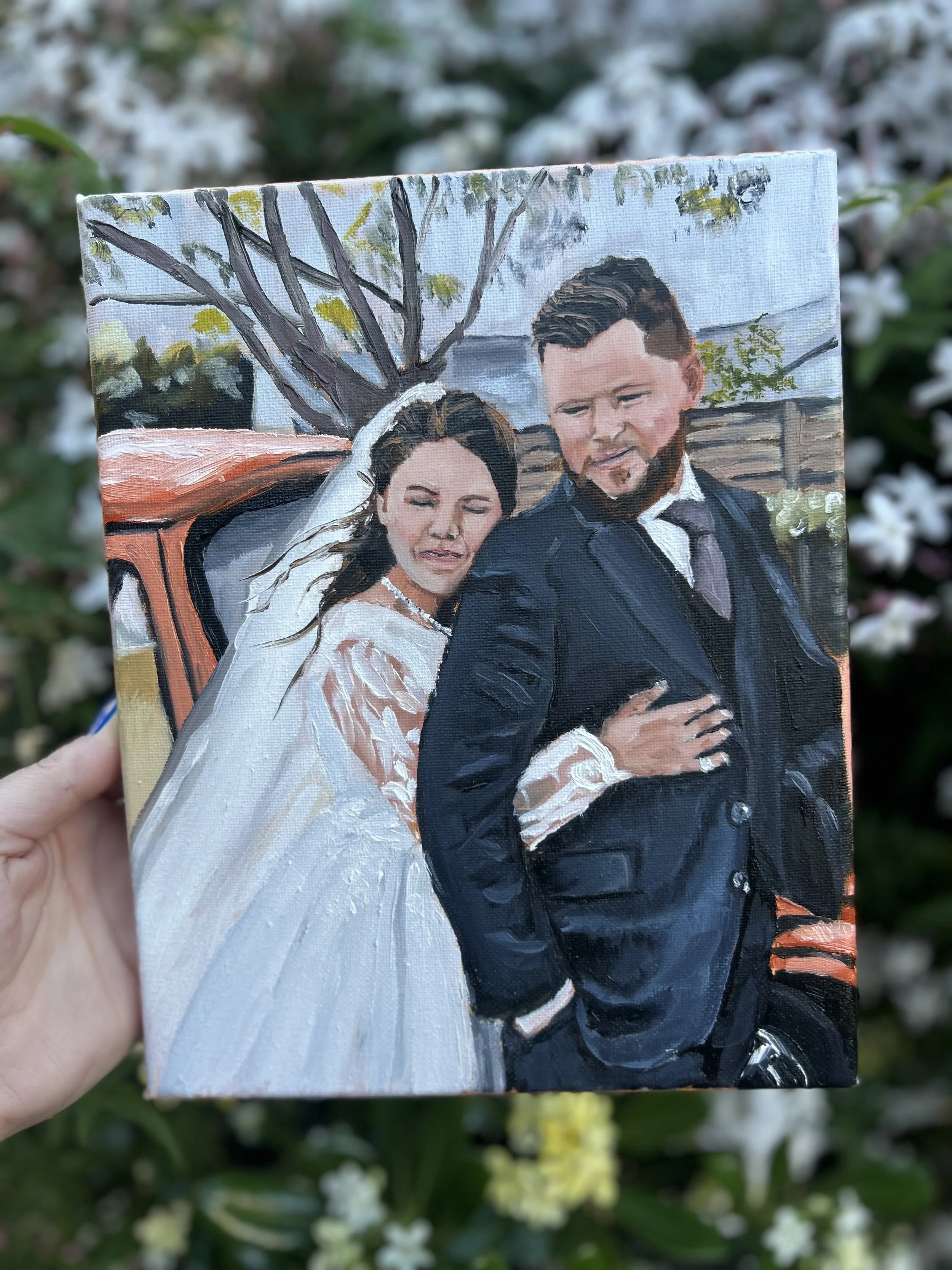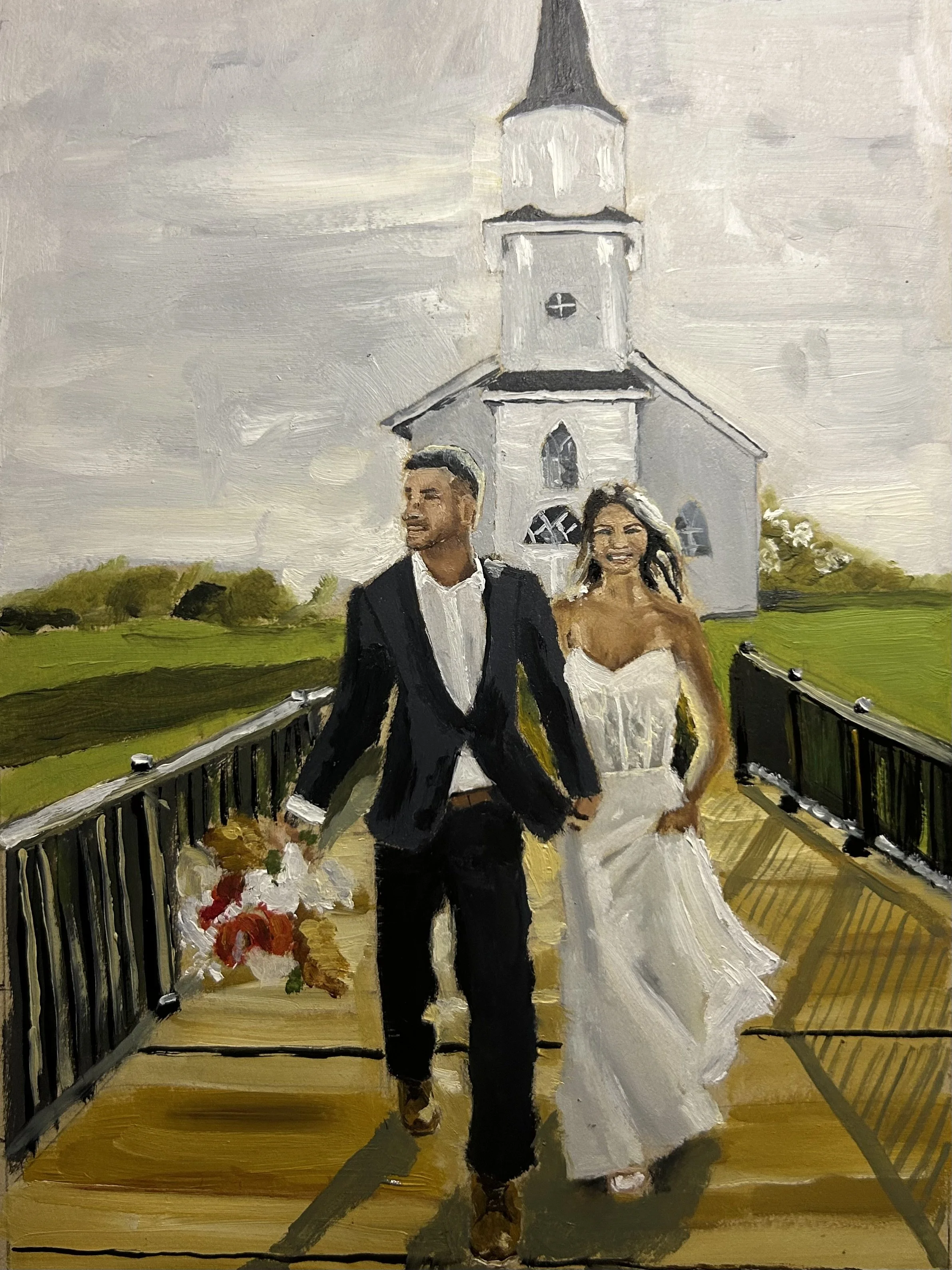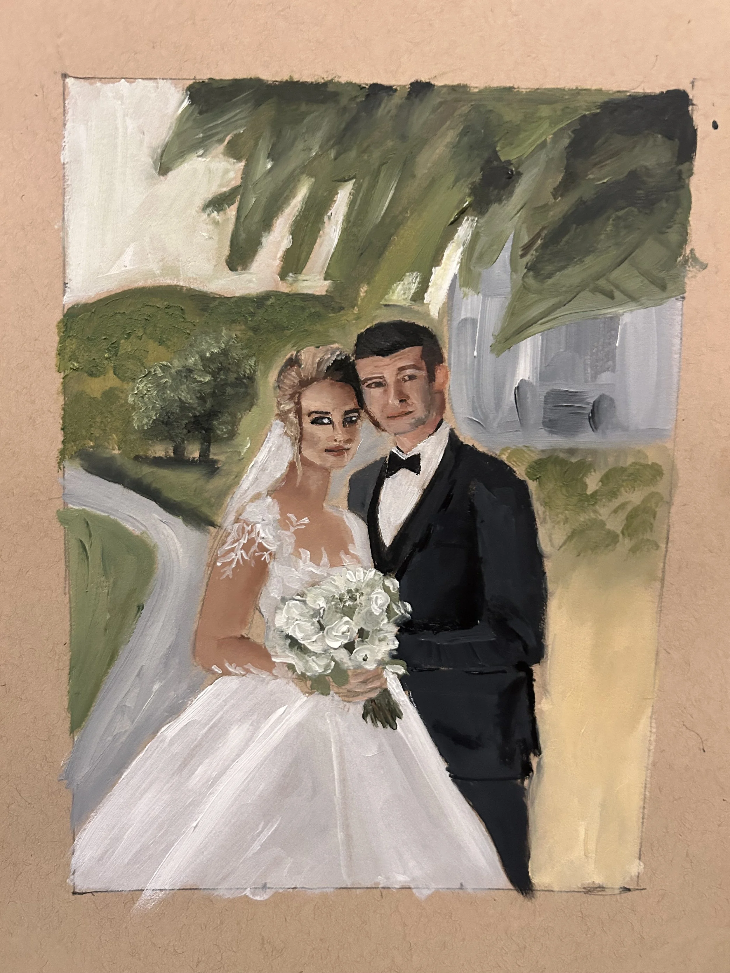 Every couple is unique, and so is each painting. My process is collaborative; we will work together and craft a vision that reflects your style and preferences before your wedding day.