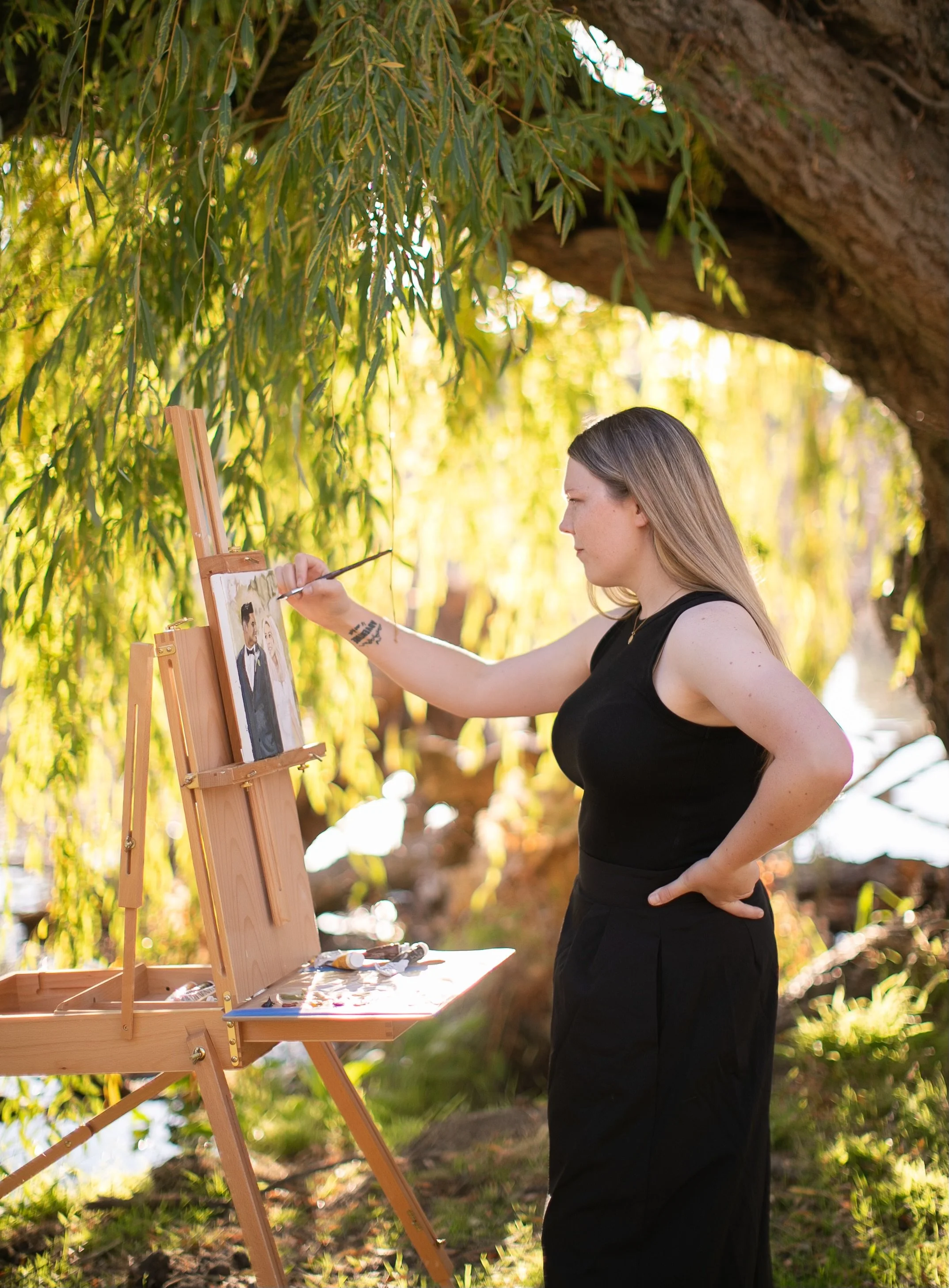 Day of set up: I will arrive a few hours before your event, set up my easel in an unobtrusive location, and begin laying out the background for your portrait.